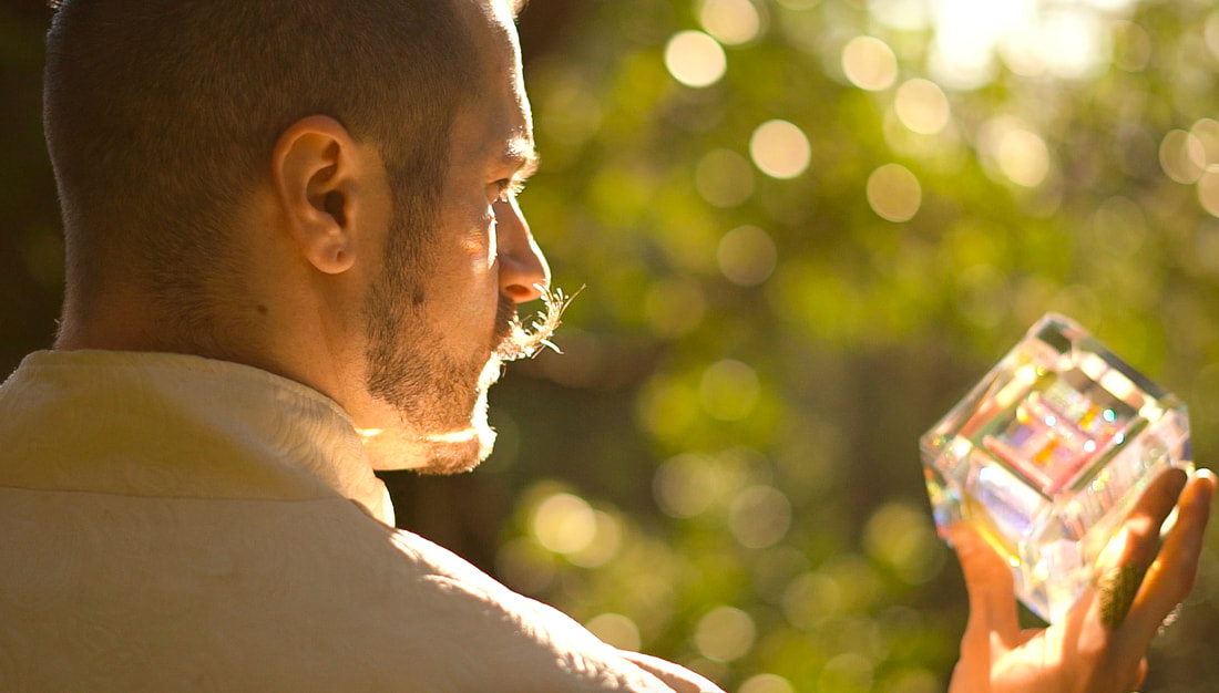 Eric intentionally designs sacred geometrical artwork and focuses on maximizing beauty & elegance in white light, while also imbuing magical qualities only revealed in the dark with laser light. His “paints” consist of natural crystals & Minerals, precious/semi precious stones as well as optical crystal & dichroic glass while his hands and grinding machines are his “paintbrushes”.
