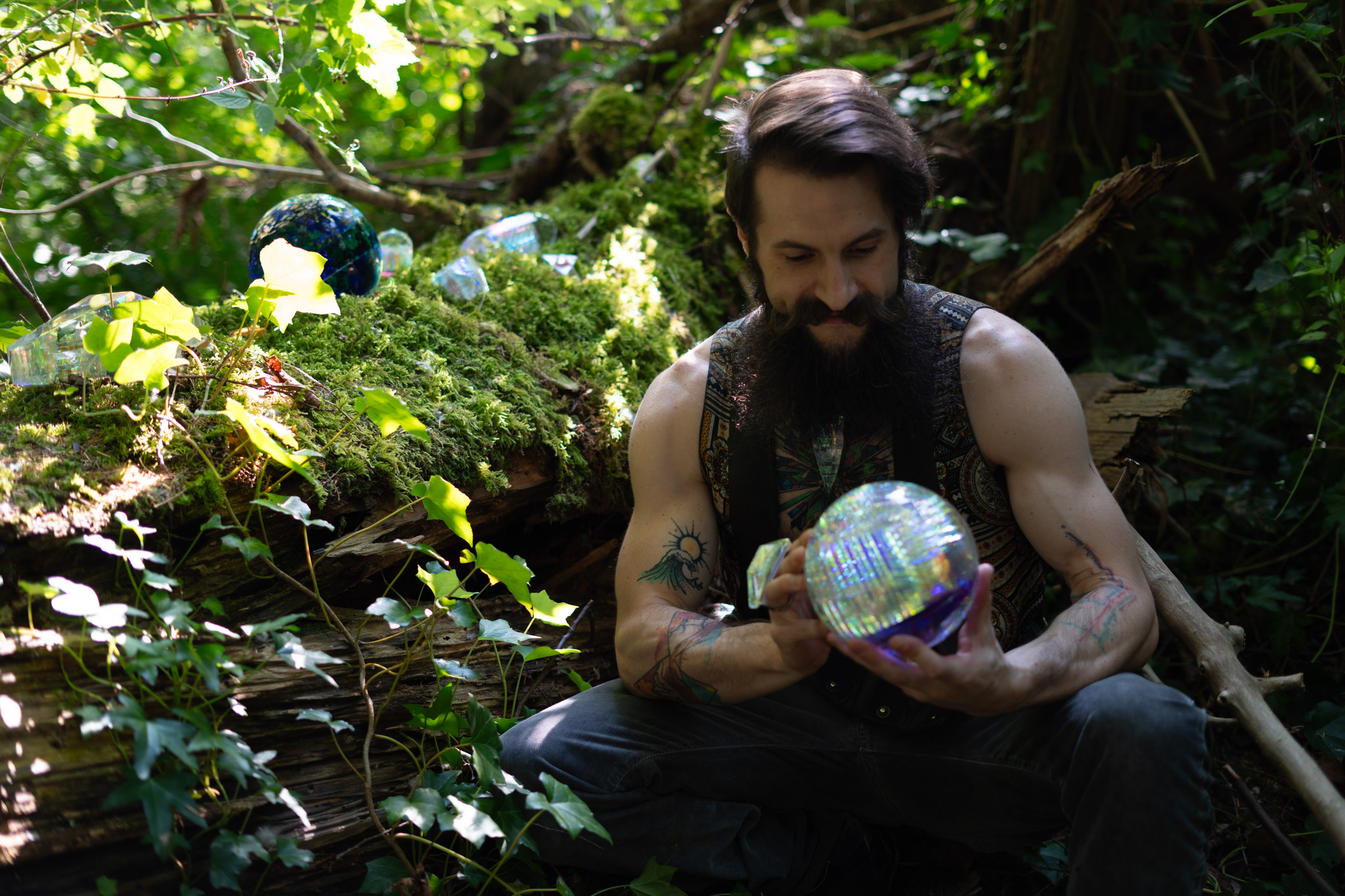 Eric, known artistically as Alüf, is a sculptor devoted to exploring the fundamental geometries of existence through the medium of crystal glass. An avid student of sacred geometry and metaphysical/spiritual philosophy, Alüf’s work bridges the visible and the invisible, offering glimpses of universal harmony in solid form.