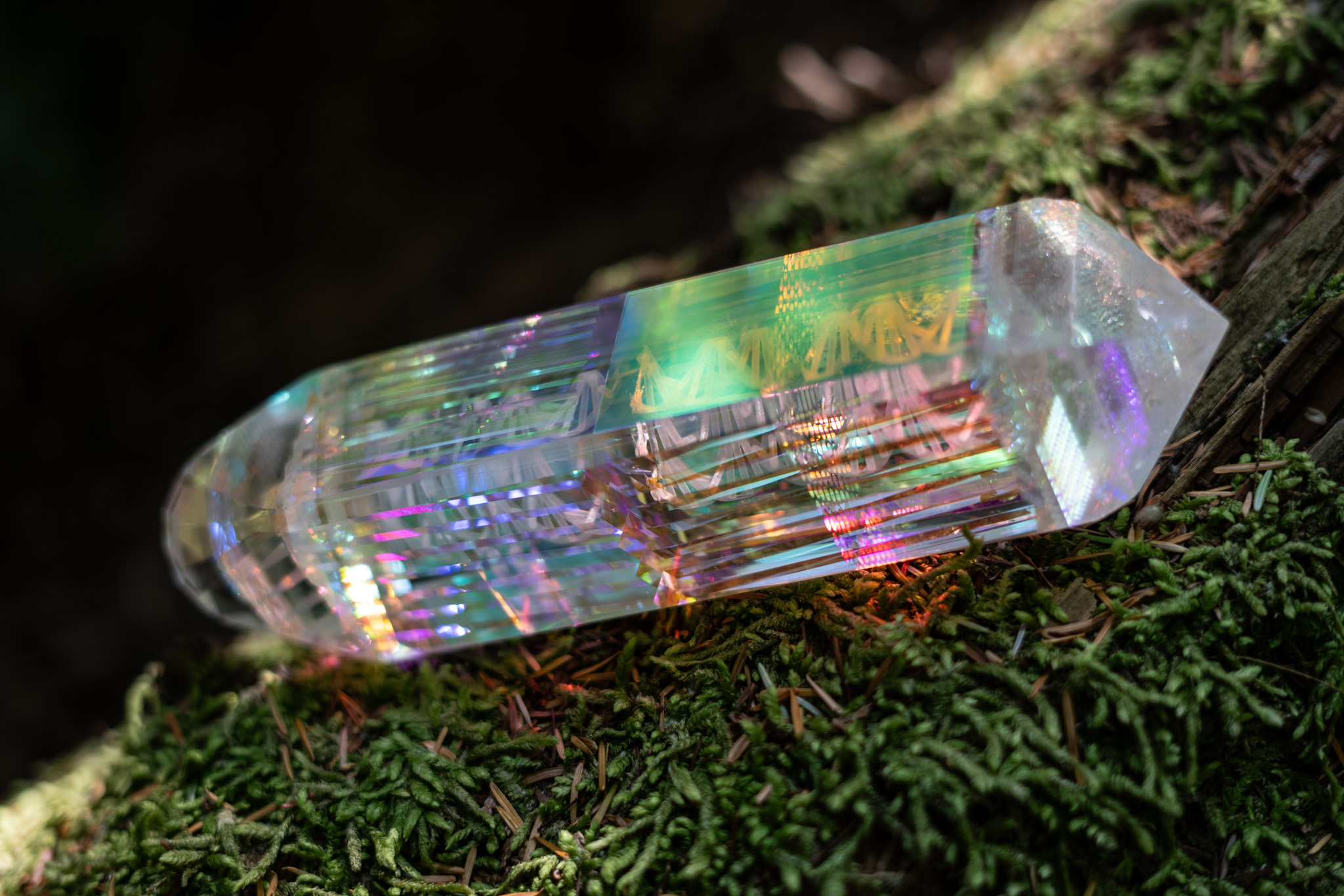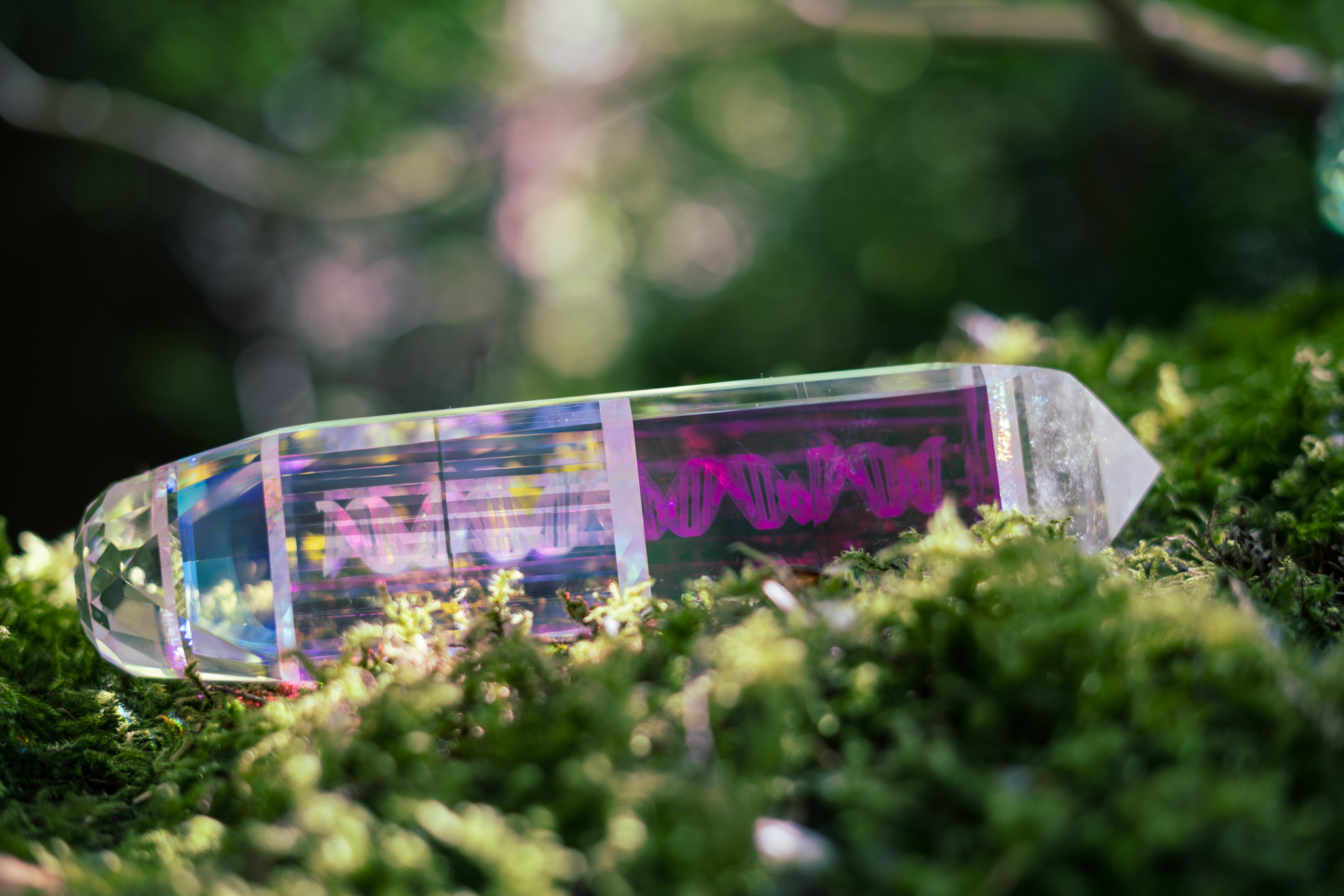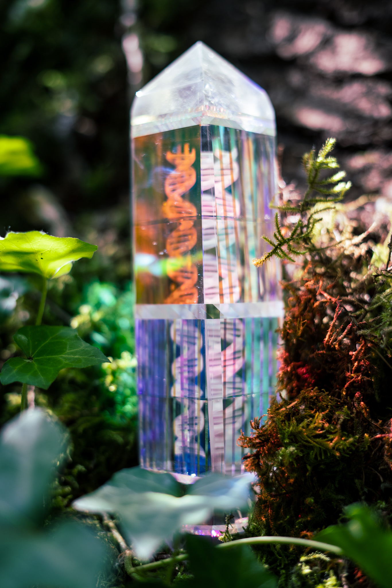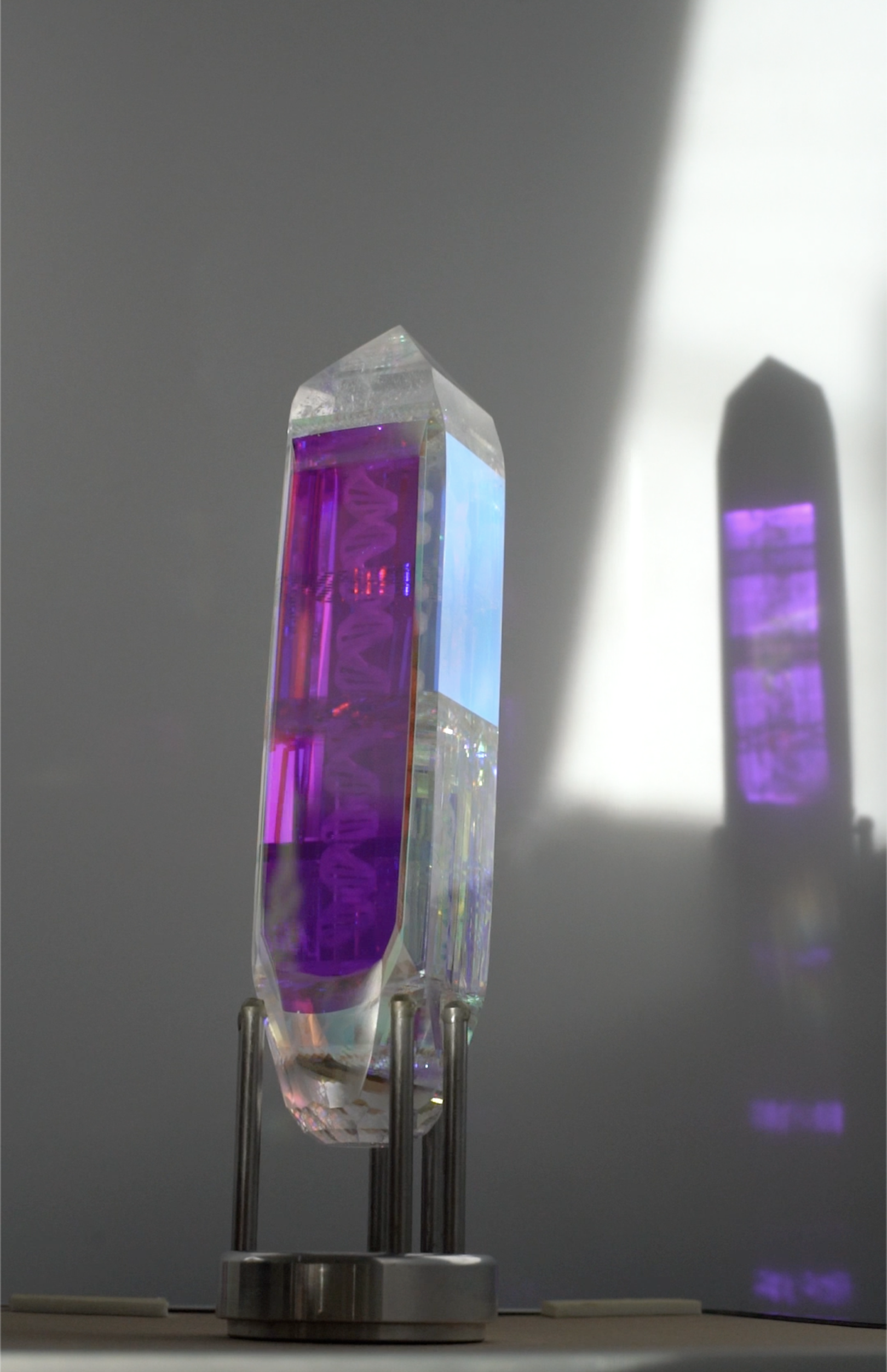 You will not find another piece like this on Earth. Made of crystal, gold, quartz and dichroic glass, this work sends you on a spiritual journey through life. The following is the short version: